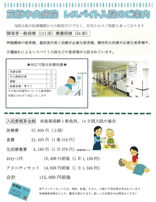当院では、以下の入院受け入れが可能です。また、レスパイト入院も受け入れています。